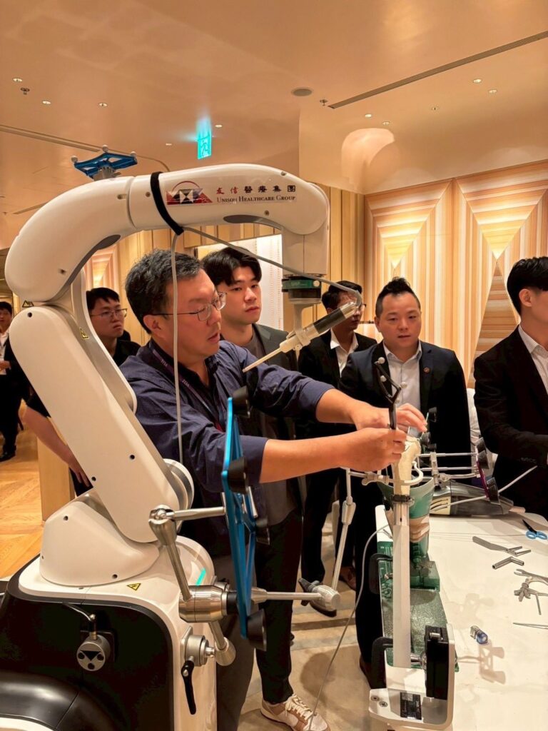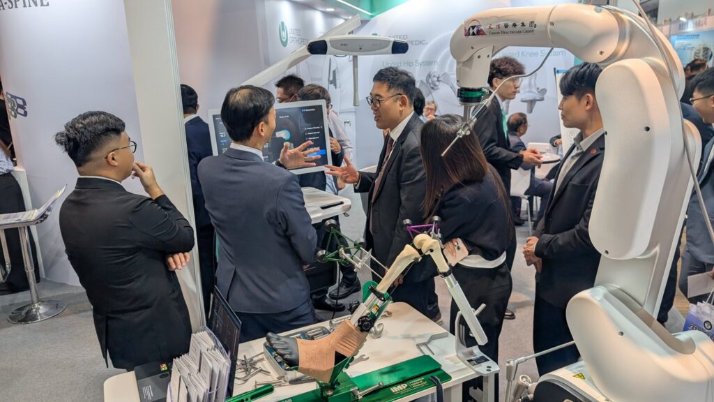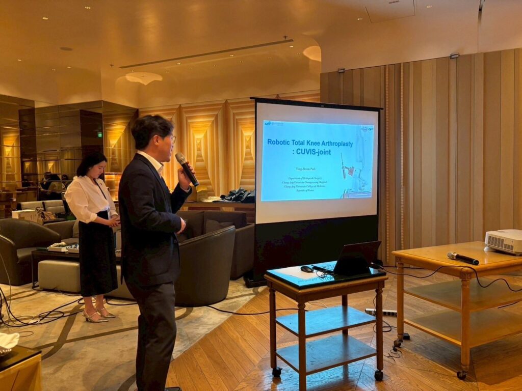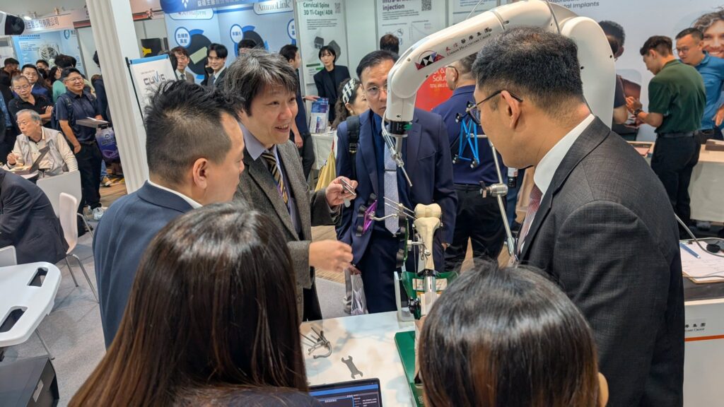 現場展示了術前個人化計劃、到機械手臂自動化精準切骨的全流程技術,吸引眾多骨科專家駐足交流,並特別感謝來自韓國首爾中央大學醫院的 Prof. Yong Beom Park 分享臨床經驗,帶來寶貴的國際視野。