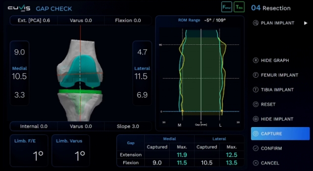 透過「骨骼間隙檢查(Gap Check)」確認手術進行並檢視術中結果。在完成 Gap Check 確認後,醫療團隊可依據術中判斷,調整手術計劃。